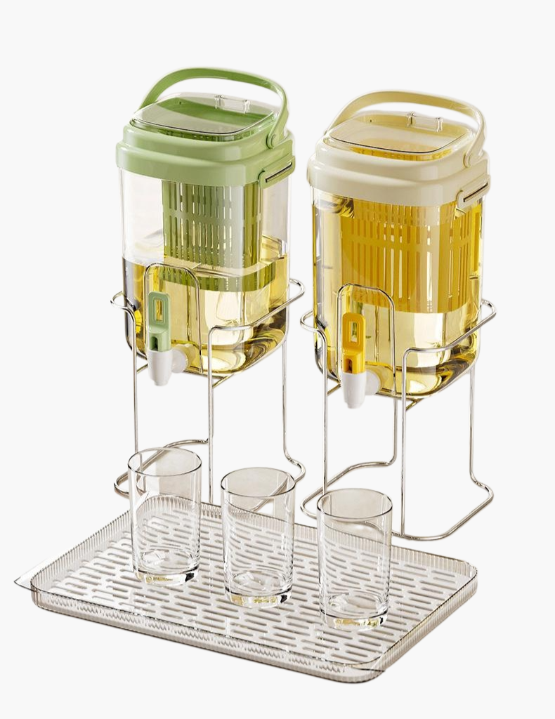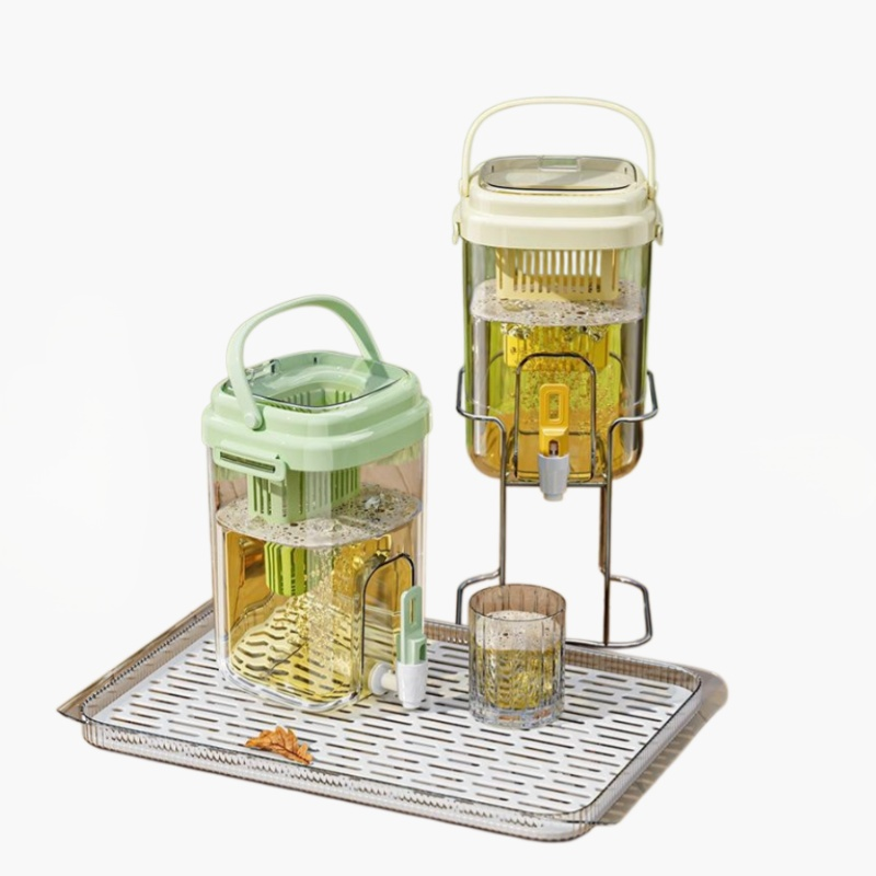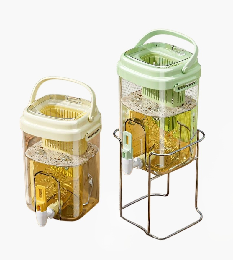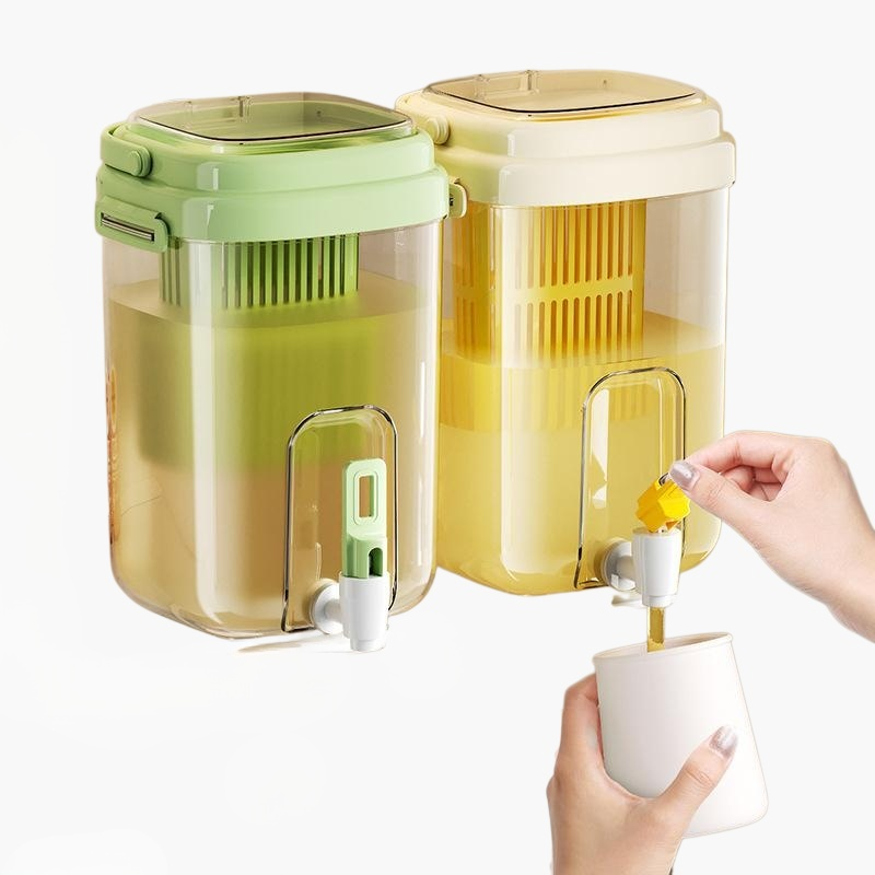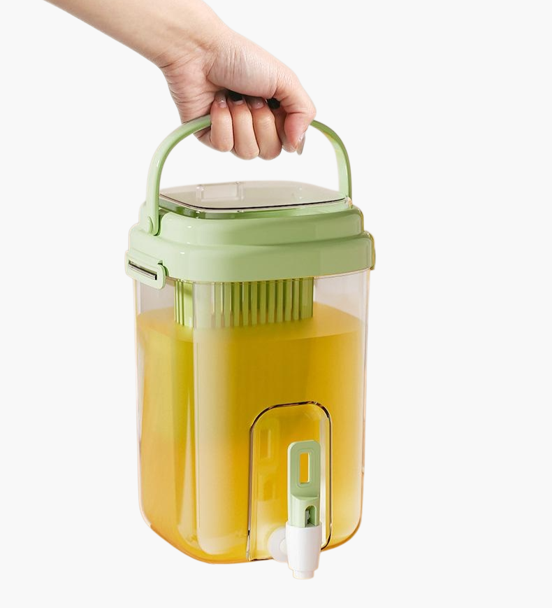 冷蔵庫の冷水ケトルは、簡単に冷水を保存・注ぐことができる耐熱ガラス製。広口設計で洗いやすく、冷蔵庫のドアポケットにも収納可能。