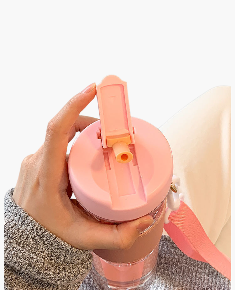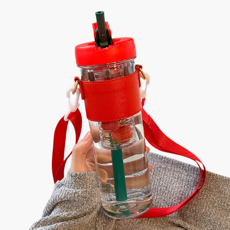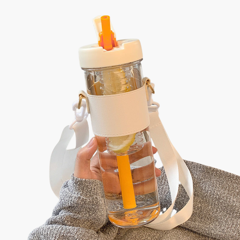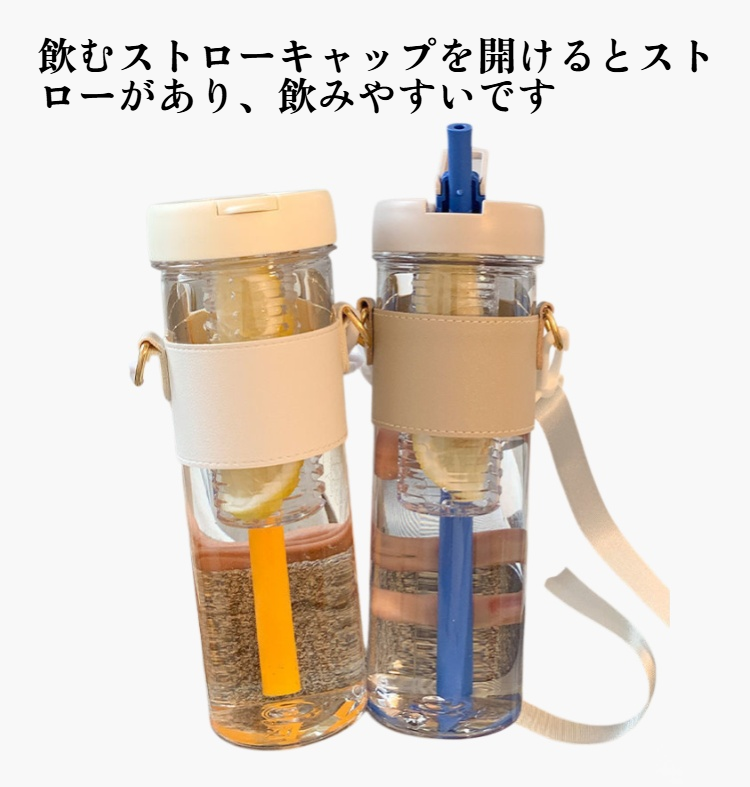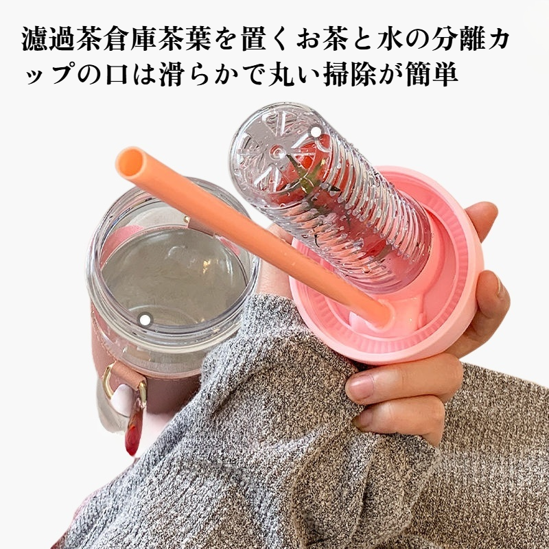 高透明度の大容量水筒、茶水分離機能付き。ストロー付きでオフィスや外出時に便利。耐久性のあるプラスチック素材使用。